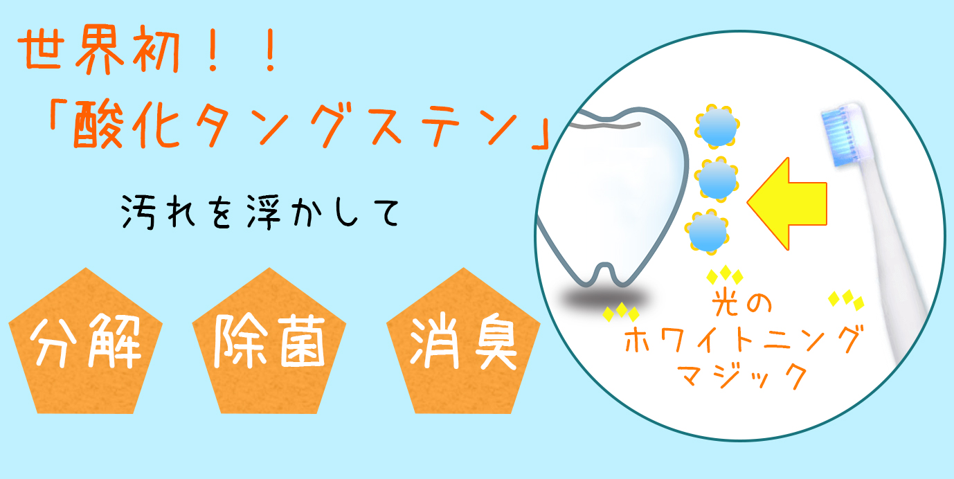 この成分、青色LEDの光を当てることで「光触媒(ひかりしょくばい)」効果で歯が白くなるそう。