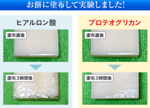 それはお餅にヒアルロン酸とプロテオグリカンを塗布し、どちらが潤いを持続させるかというもの!