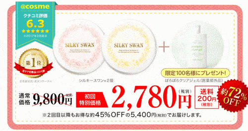さらに、今ならシルキースワン2個とピーリングジェルの3個セットが72%OFFで