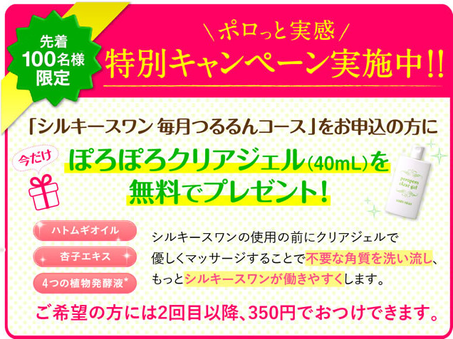 シルキースワンを買うと今だけ「ピーリングジェル」がおまけで付いてくるということ!